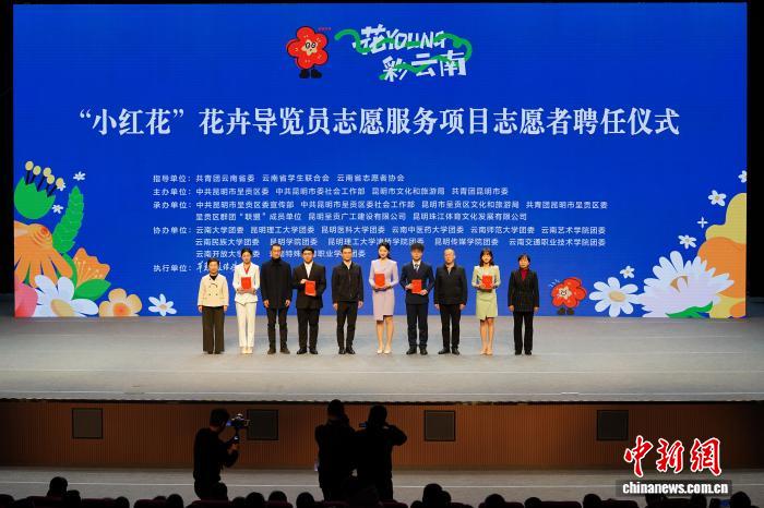 中新网昆明12月18日电 (记者 刘冉阳)云南省第二届花卉导览员大赛颁奖典礼暨“小红花”花卉导览员志愿服务项目展演,18日在昆明市呈贡区举行。获奖选手正式受聘为“小红花”花卉导览员志愿者,他们将在斗南花卉市场为游客提供专业导览服务,用生动讲解讲好“云花”故事。