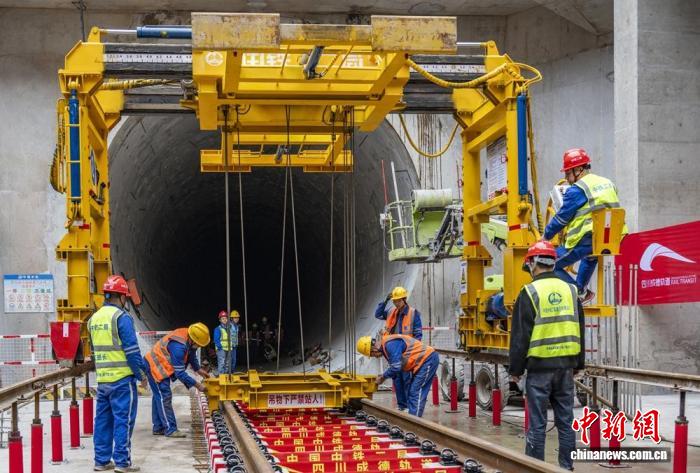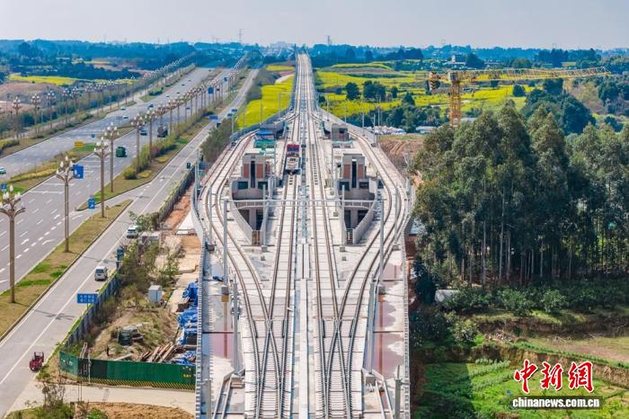 中新网成都4月1日电 (记者 刘忠俊)记者4月1日从成都轨道集团获悉,市域(郊)铁路成都至德阳线(以下简称“成德线”)首节轨排精准落位,德阳北站、韦家碾站同步启动机电安装与装修施工,标志着该线路正式从大规模土建施工阶段,转入轨道铺设、机电安装等站后工程施工新阶段。