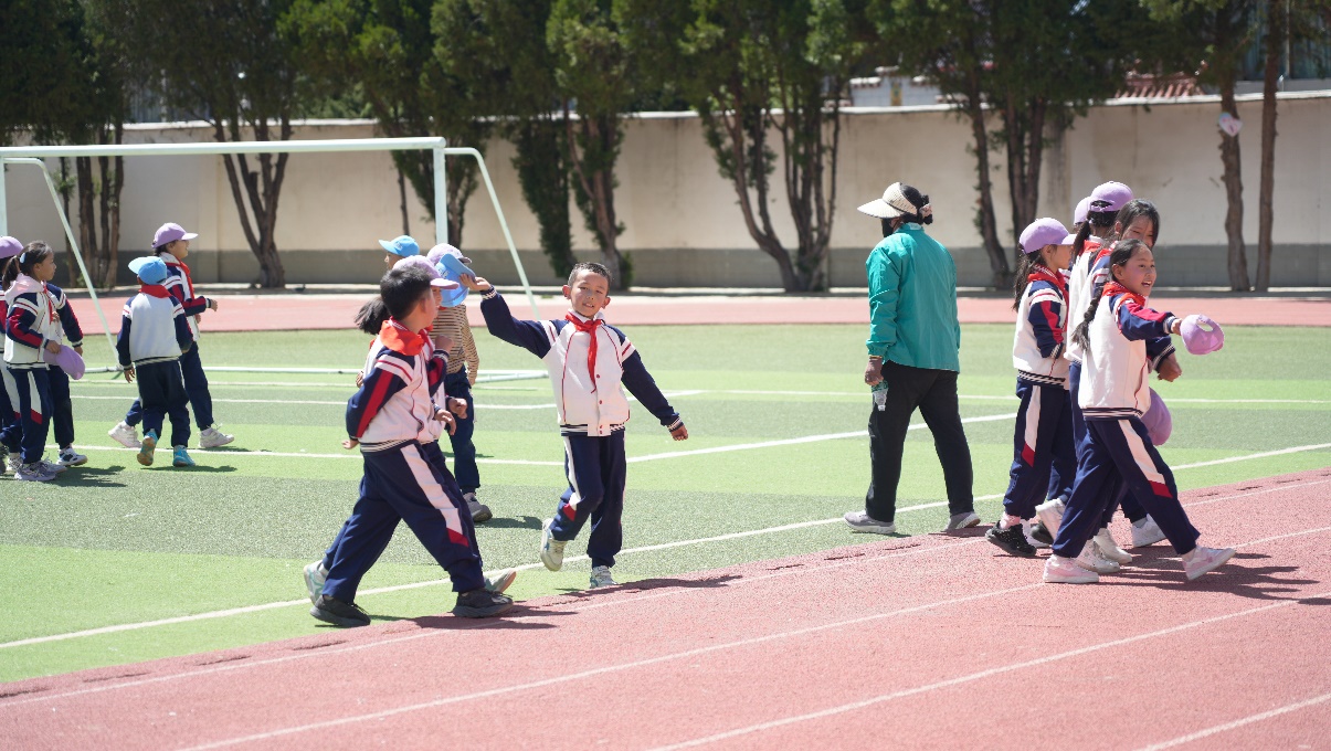 “利利老师,我们来玩老鹰抓小鸡。”操场上,刚刚整队完,正自由活动的学生喊学校的湖南援藏教师、体育学科教研组组长戴胜利。