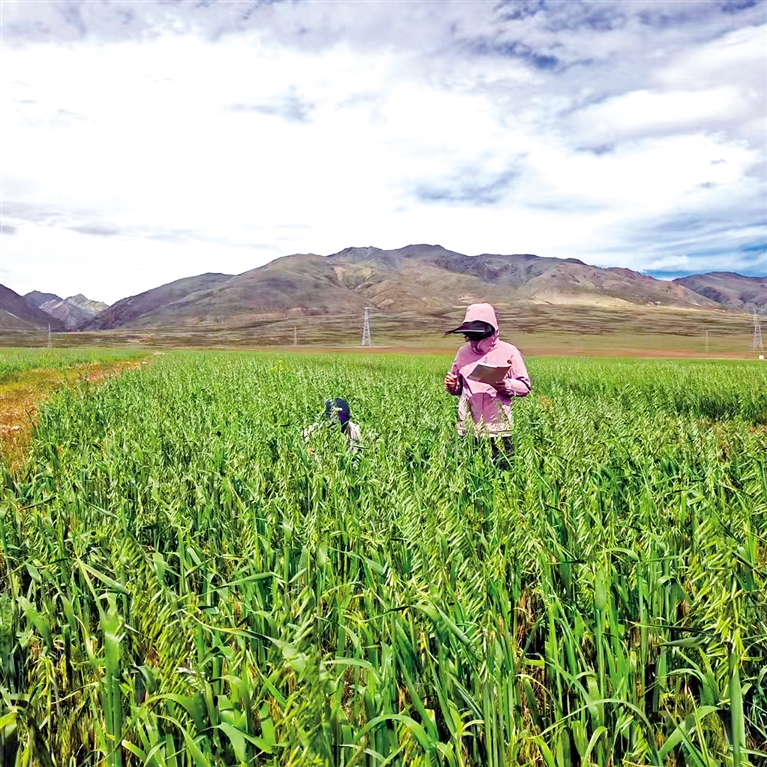 在陕西省援助扩建的阿里地区饲草技术推广中心试验基地,技术人员正在工作。陕西省第十批援藏工作队供图