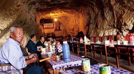 布达拉宫下的山洞被改建成甜茶馆,很多转经的人都喜欢在这里休息喝茶。扎西/ 摄