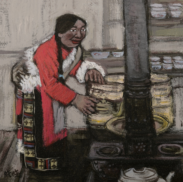 布面油画《吉祥西藏之十八》(28x28cm)。崔晓晓 绘