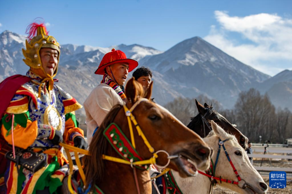 3月2日,马术队员在重现马球比赛场景。新华社记者 晋美多吉 摄