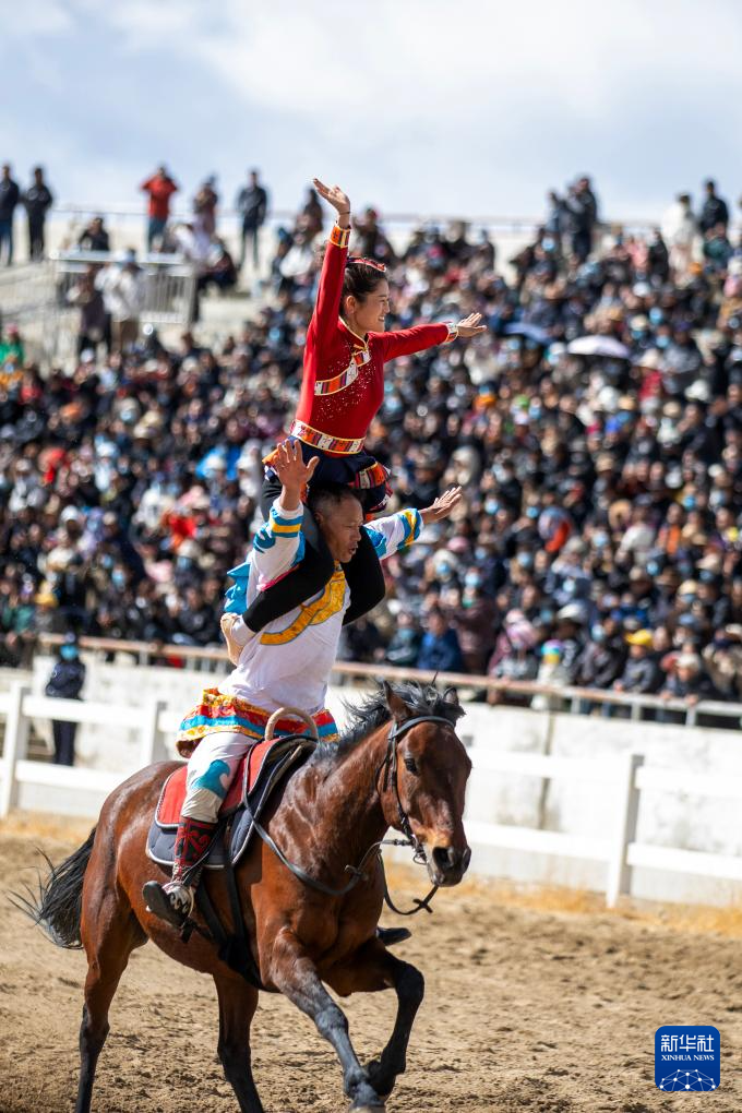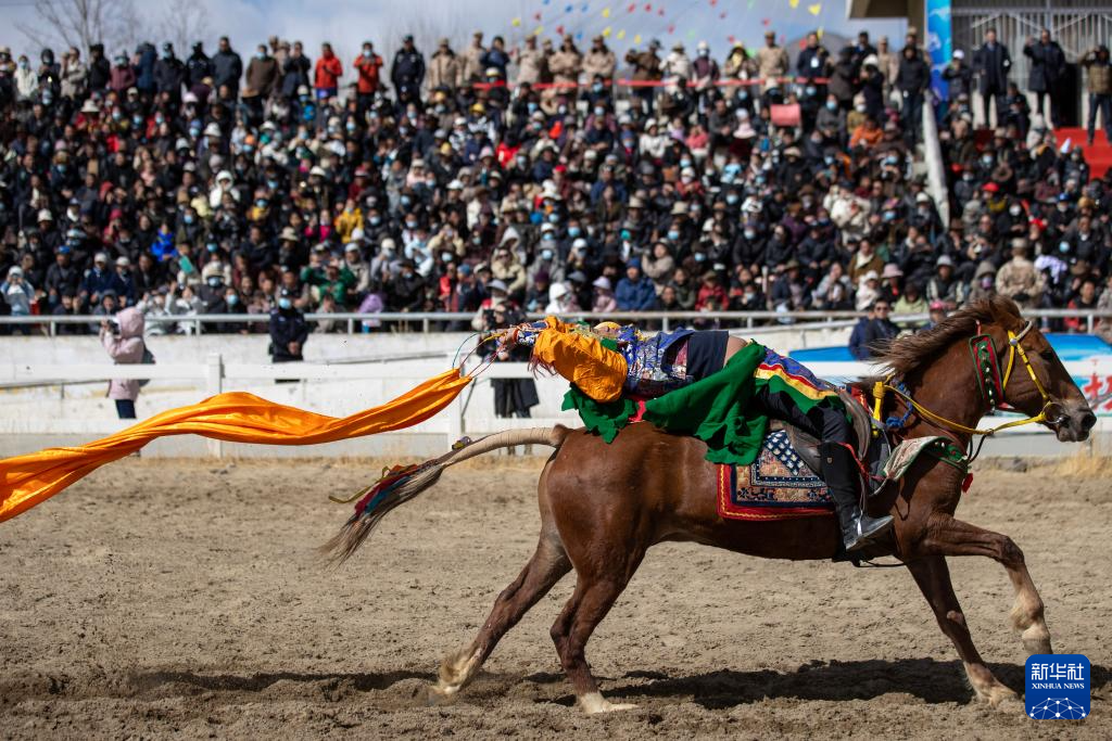 当日,2025年藏历新年初三民族传统马术表演暨民族赛马活动在拉萨市北郊赛马场举行。马术在西藏是吉祥、勇敢和智慧的象征。骑手们用精彩表演为观众送上新年的祝福。