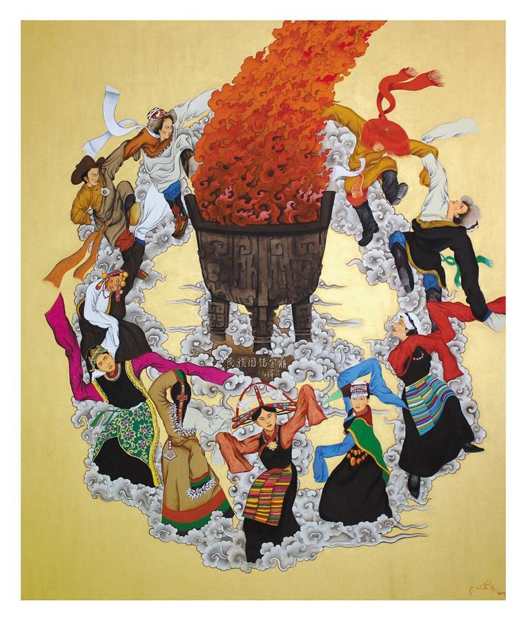 2012年到2019年,在西藏推进“西藏百幅新唐卡工程”中,这种扎根生活的创作理念得到充分展现。他与200多位画师共同创作的《青藏公路通车》《西藏和平解放》等作品,将重大历史事件与藏族民间叙事巧妙结合,既展现了时代变迁,又保留了民族艺术特色。这种“唯美唯新唯唐”的创作追求,为西藏主题性绘画开辟了新路径。