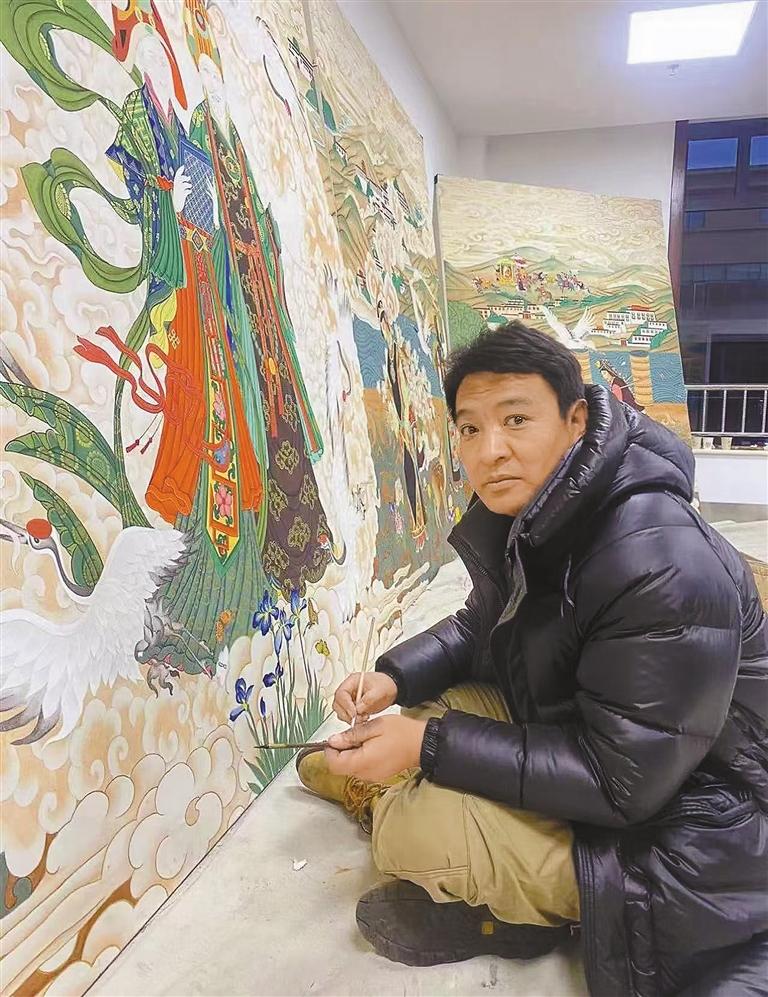 站在西藏美术馆的顶层展厅,拉巴次仁的目光越过布达拉宫,投向更远的天际。“西藏美术要真正走向世界,首先需要以精湛技艺为根基,更要以文化自信为底气。我们既要守护好民族艺术的基因密码,又要用国际化的艺术语言讲好中国故事。”拉巴次仁在谈到艺术传承与创新时强调,“作为当代文艺工作者,我们肩负双重使命,一方面要深耕创作,以精品力作展现雪域高原的精神气象;另一方面要加强理论建构,系统梳理西藏美术发展脉络。未来,我们的核心课题在于——如何通过美术创作,既呈现西藏的自然之美与人文之魂,又记录藏族百姓的幸福生活,更要以艺术笔触勾勒新西藏的时代精神图谱。这将是我们穷尽一生探索的艺术命题。”