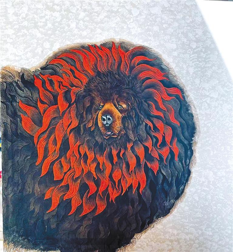 在拉巴次仁的艺术生涯中,他始终践行“扎根民间、深植传统”的创作理念。他每年坚持深入藏地村落开展田野调查,在藏戏舞台的幕布后研习色彩运用,在民间画师的作坊里系统整理矿物颜料研磨技艺等。这种沉浸式的文化浸润,使他将西藏传统文化的基因图谱内化为创作血脉,逐步构建起“传统为本、创新为魂”的艺术理念。