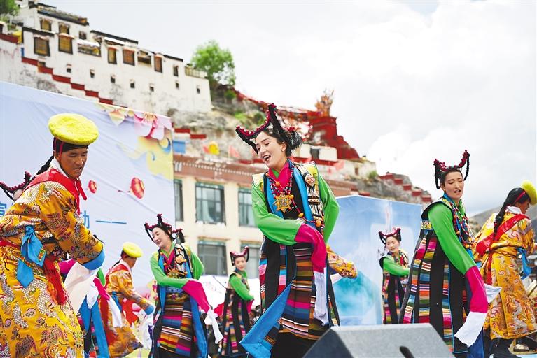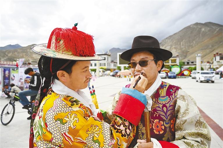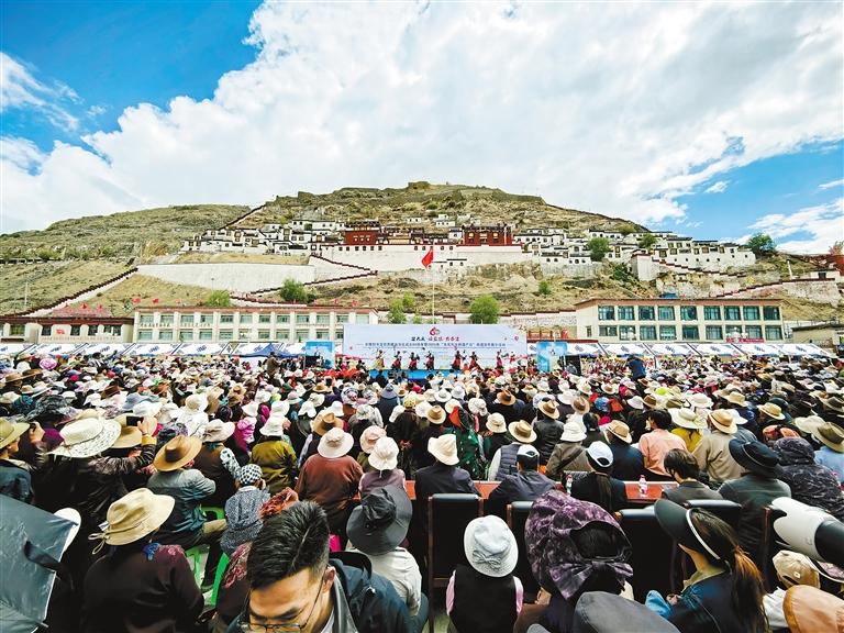 在日喀则市喜迎西藏自治区成立60周年暨2025年“文化和自然遗产日”非遗宣传展示活动中,来自全市各县(区)的19支藏戏队轮番展演,各色非遗产品集中亮相,为现场观众献上了一场“非遗盛宴”。