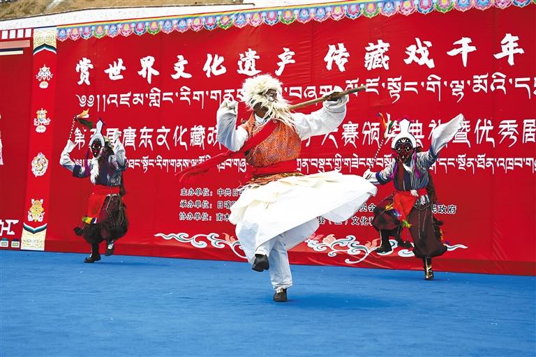第五届唐东文化藏戏(折子戏)大赛决赛上,参赛队伍正在表演。