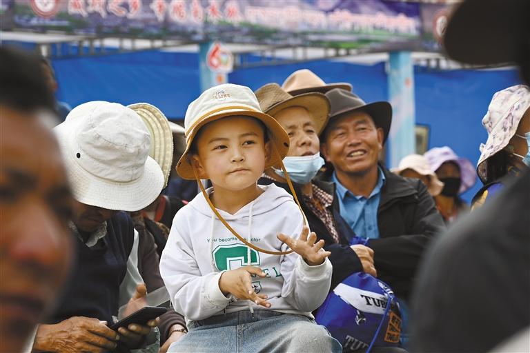 认真观看藏戏表演的小观众。