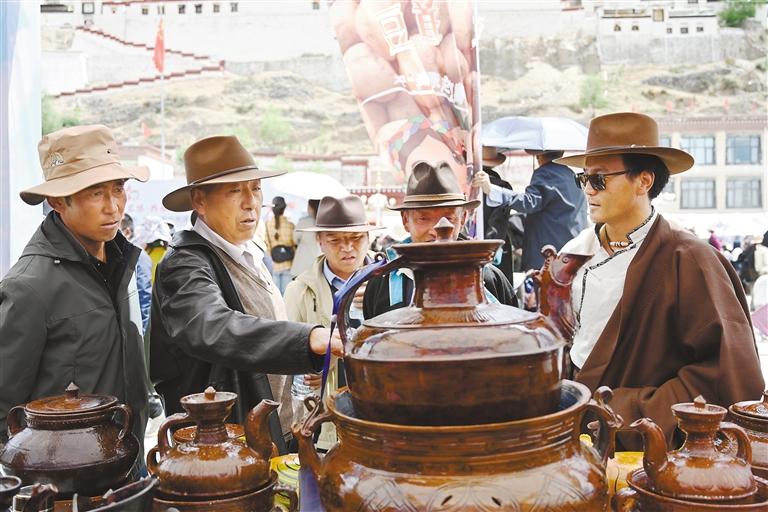 在欣赏视听盛宴的同时,国家级非遗项目江孜卡垫织造技艺、自治区级非遗项目牛村陶器制作技艺、市级非遗项目恰哇编织技艺等50个非遗项目,以及民族手工业产品、南木林县县级非遗产品集中展览展销,备受消费者青睐。各非遗产品展销点收入不断、订单不断,经初步统计,活动现场非遗产品销售总额达45万余元。