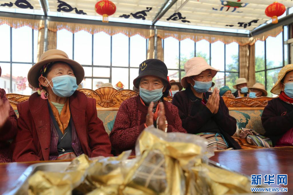 在西藏山南市乃东区特困人员集中供养服务中心,老人们收到了粽子和节日的问候(2021年6月14日摄)。新华社记者 张兆基 摄
