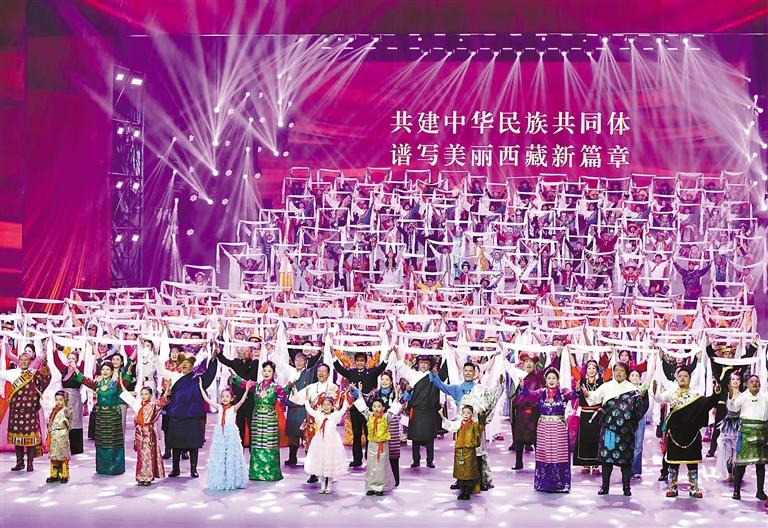 8月20日晚,庆祝西藏自治区成立60周年文艺晚会《雪域欢歌》在西藏大剧院举行。演出分“幸福起点”“奔跑的高原”“新的征程”三大篇章,十余个歌舞节目礼赞雪域巨变,表达各族人民听党话、感党恩、跟党走的共同心声。