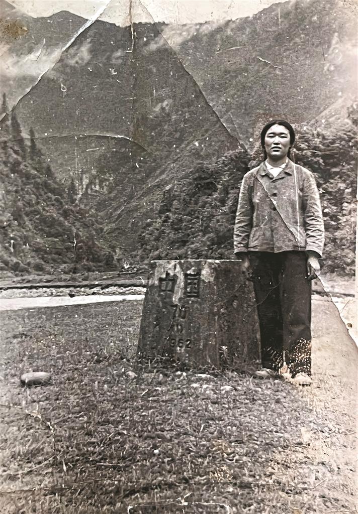 第一张照片总是最引人注目——拍摄于1965年的黑白相片里,年轻的石达普芝站在中尼边境界碑旁,她脚上穿的是沾满泥巴的布鞋,身后是茫茫的大山。