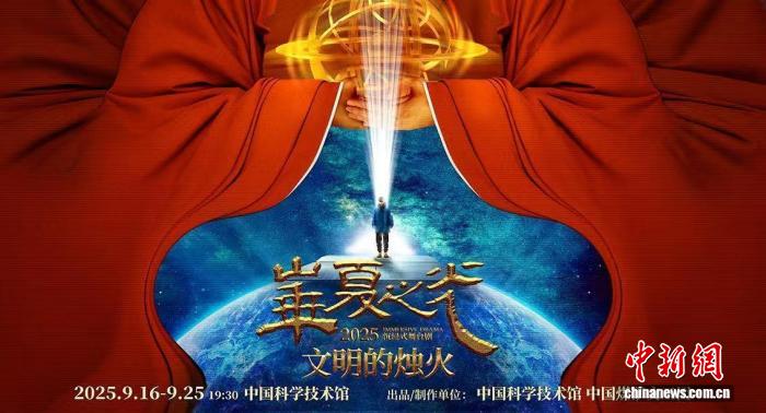 中国科技馆9月14日发布消息说,值此首个全国科普月期间,该馆将于9月16日至25日(每晚19:30-20:45)连演10场沉浸式舞台剧《华夏之光-文明的烛火》,公众可于9月15日中午12:00起,通过其官方网络平台预约观看。