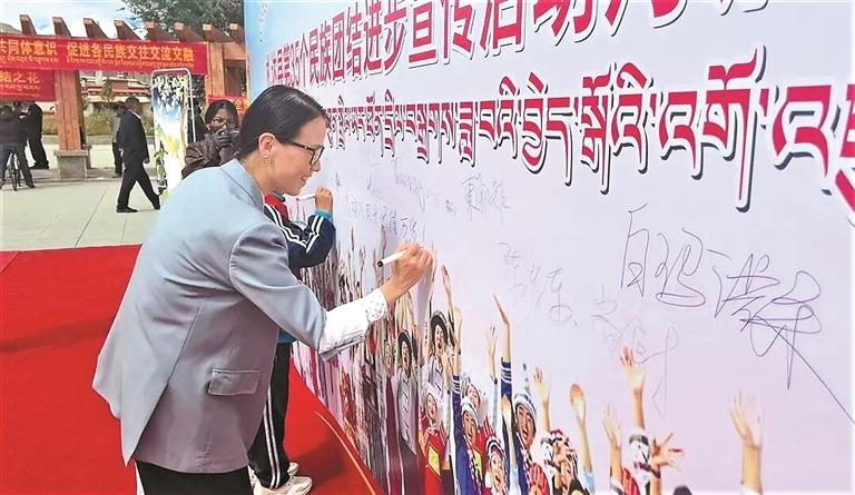 图为民族团结进步月宣传活动现场,群众纷纷签下自己的名字,表达对维护民族团结的坚定承诺。通讯员 郑凯凯 摄