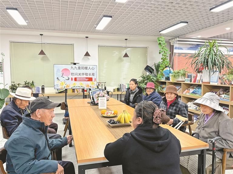 日间照料中心工作人员格桑江才说,他们将工作内容融入老年人社区生活,推动嵌入式养老服务,开设了舞蹈、手工等课程,定期举办书法绘画、健康义诊、知识讲座等主题活动。