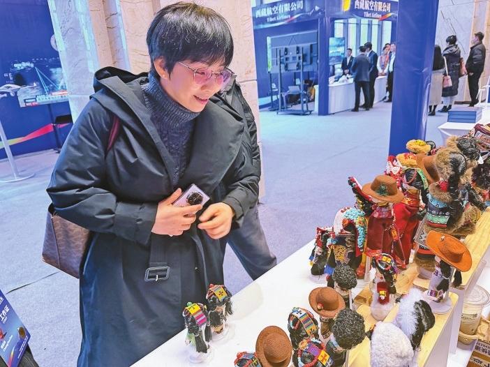 与会嘉宾在企业展位前欣赏文创产品。记者 索朗琼珠 摄