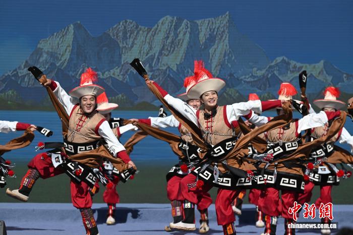 图为阿里地区改则县艺术团表演舞蹈《欢舞幸福·改则情》。中新社记者 贡嘎来松 摄