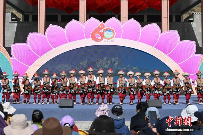 11月2日,西藏自治区“大地欢歌 格桑花演出季”全区县(区)艺术团惠民演出活动,在拉萨市堆龙德庆区民族团结主题公园精彩上演。据悉,此次演出由西藏自治区文化和旅游厅主办,西藏自治区群艺馆(区非遗保护中心)承办,各市地文旅局及拉萨市堆龙德庆区委宣传部、文旅局协办,以展示基层文化活力、丰富民众精神生活为核心,汇聚了西藏各县(区)艺术团骨干力量,这些扎根乡土的“文艺轻骑兵”,成为基层文化传播的“主力军”。图为山南市隆子县艺术团表演打墙舞《扎西康桑》。中新社记者 贡嘎来松 摄