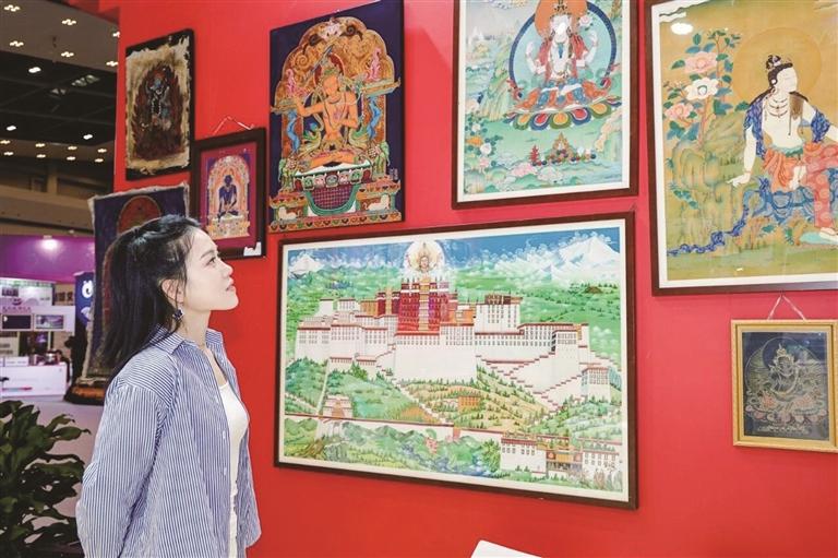 场馆外,热情奔放的康巴歌舞洋溢着浓郁的民族风情。走进场馆内部,可以近距离体验藏香制作和飘逸灵动的藏文书法。唐卡漆画、民族手工饰品等藏东文化和虫草、贝母、藏红花等特色产品琳琅满目,更有边坝三色湖、贡觉拉妥湿地、芒康千年盐田、洛隆俄西杏花等雪域美景,进馆咨询互动的企业、嘉宾络绎不绝。