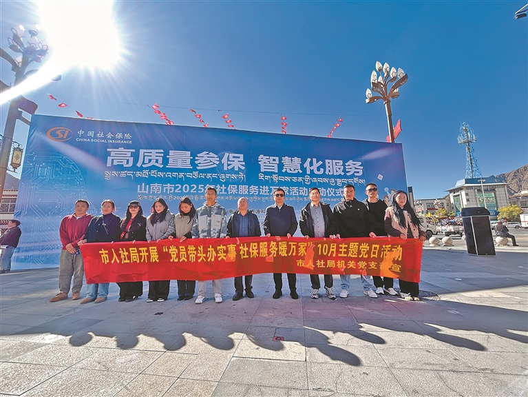 图为山南市人力资源和社会保障局机关党支部开展“党员带头办实事 社保服务暖万家”主题党日活动。图/文 记者 武沛涛 通讯员 王华强 李小龙