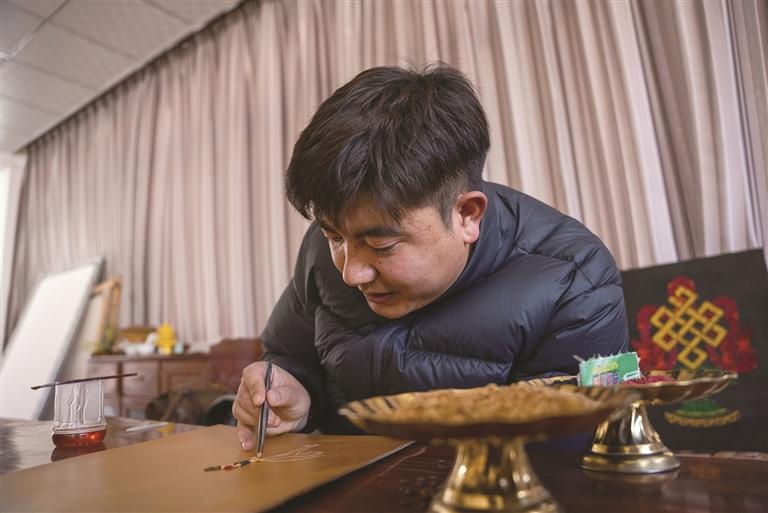 从儿时对青稞画的好奇,到少年时深耕唐卡的执着,再到如今以青稞为媒传播家乡文化的坚守,仁青多吉用十几年的时光,让一粒粒普通的青稞跨越了餐桌与艺术的界限,让黑颈鹤从湿地“飞”向了更广阔的文旅舞台。他的作品,是西藏农耕文化的活态传承,是生态保护的生动诠释,更是西藏文旅融合发展的微观缩影。