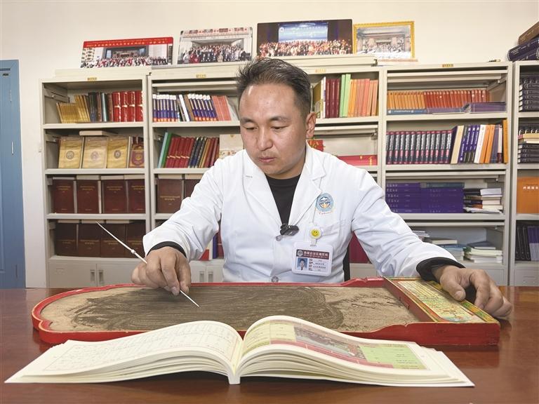 多杰正在进行沙盘演算。文/图 记者 德吉曲珍