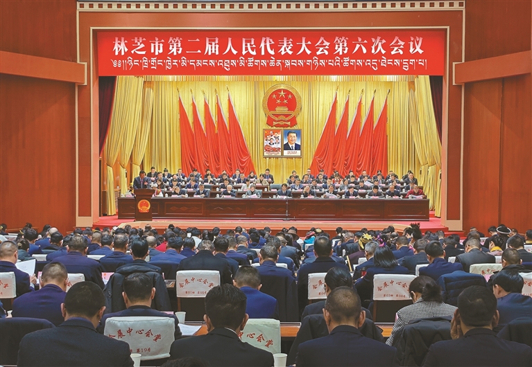 林芝市第二届人民代表大会第六次会议开幕现场。