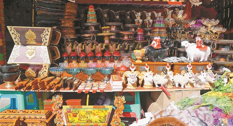随着春节和藏历新年的临近,墨竹工卡县年货市场进入“红火模式”,五彩“塔脚”、吉祥切玛盒、酥脆卡塞等年货琳琅满目,甜蜜糖果、新鲜水果等商品一应俱全,各族群众穿梭其间精心挑选,处处洋溢着热闹的节日氛围。