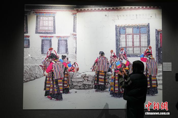 图为展现西藏人文的大幅照片吸引观众。中新社记者 刘冉阳 摄