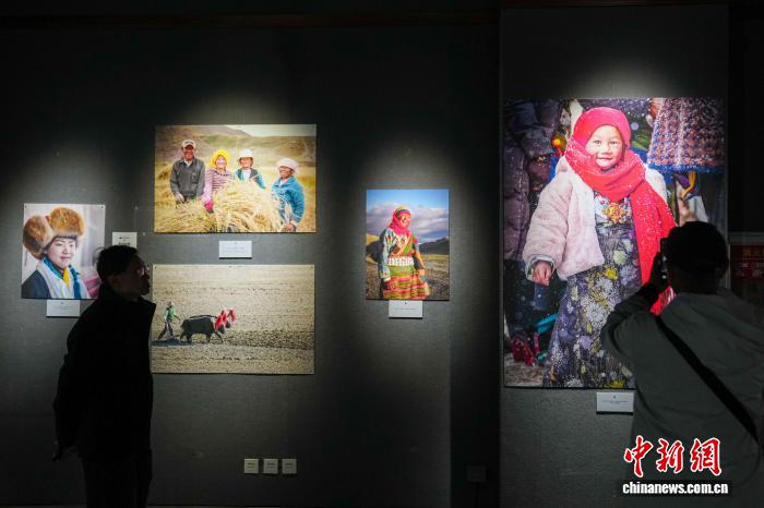 图为西藏民众的照片吸引观众。中新社记者 刘冉阳 摄