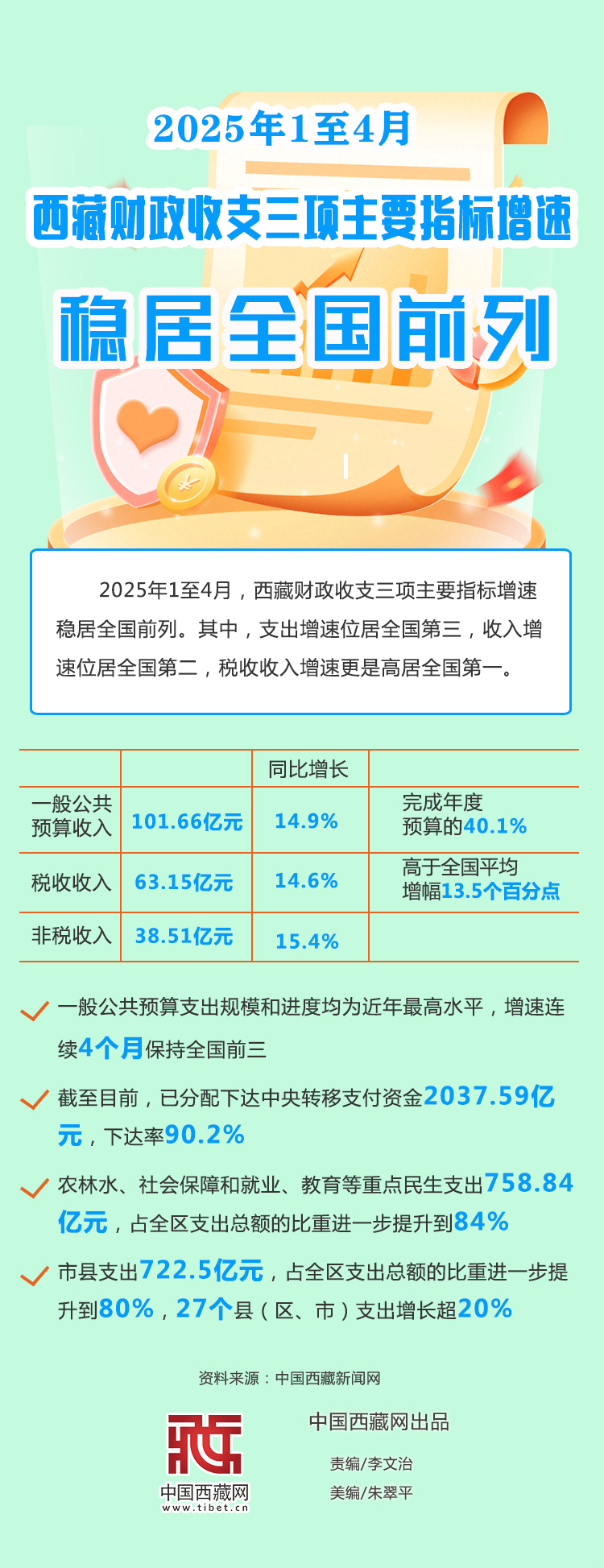 海报|2025年1至4月西藏财政收支三项主要指标增速稳居全国前列