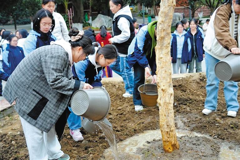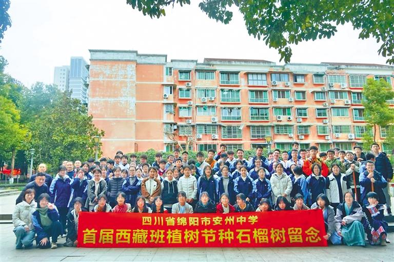 近日,四川省绵阳市安州中学组织首届西藏班学生在该校沙汀广场种下象征民族团结的石榴树,埋下许愿瓶,铸牢中华民族共同体意识,践行“绿水青山就是金山银山”的生态理念。