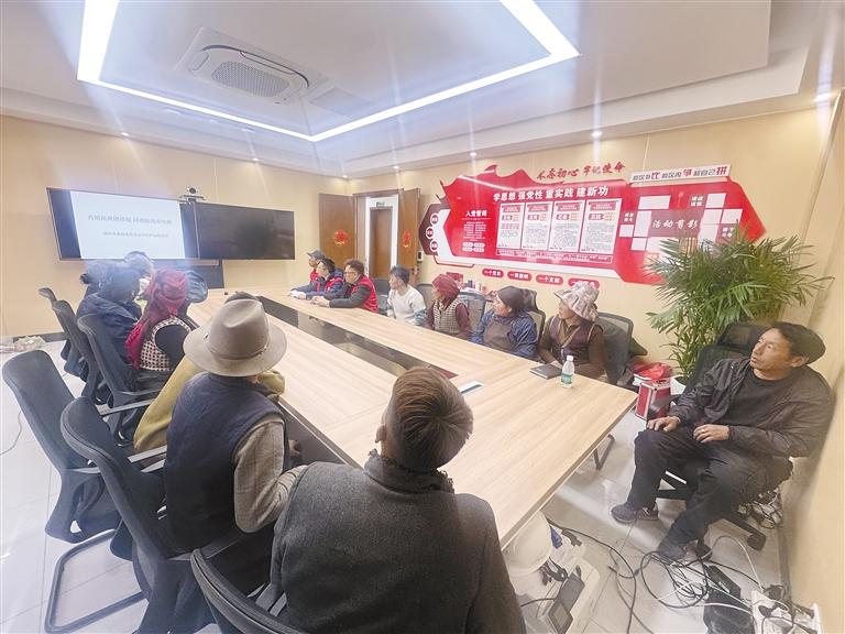 图为国网西藏超高压公司组织党员服务队向村民讲解防汛减灾知识。记者 卢文静 摄