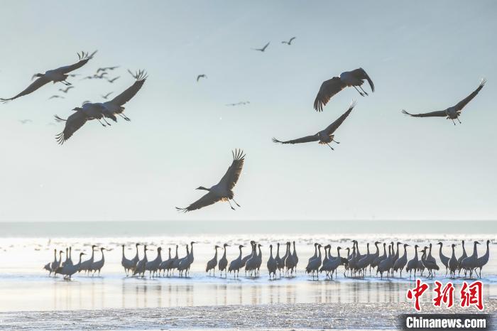 图为拉萨市林周县境内越冬的黑颈鹤。资料图 贡嘎来松 摄