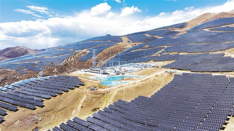位于拉萨市墨竹工卡县扎西岗乡的华能拉萨扎西岗100兆瓦光储发电项目,是自治区2023年保障性并网清洁能源项目。该项目采用“牧光互补”模式开发,通过“板上发电、板间种草、板下放羊”,可实现生态环境保护、清洁能源发展、土地高效利用、群众增收致富的“多赢”局面。