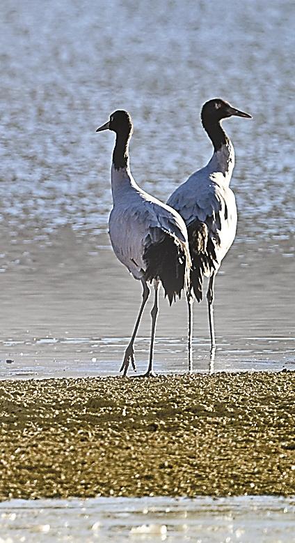 图为在拉萨市林周县境内的黑颈鹤(资料图片)。