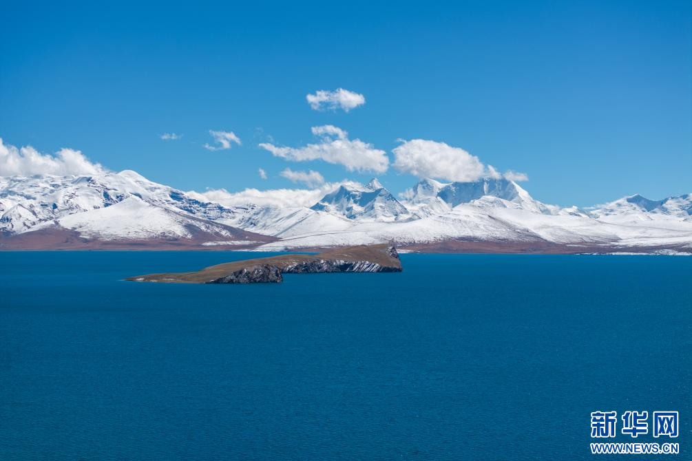 10月9日拍摄的普莫雍错(无人机照片)。新华网 旦增努布 摄