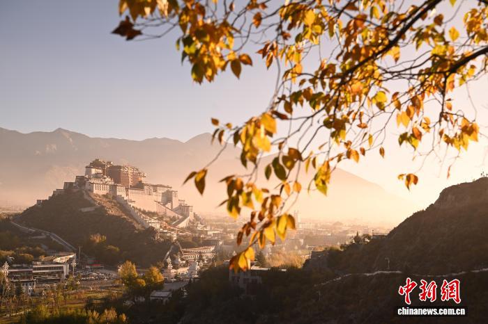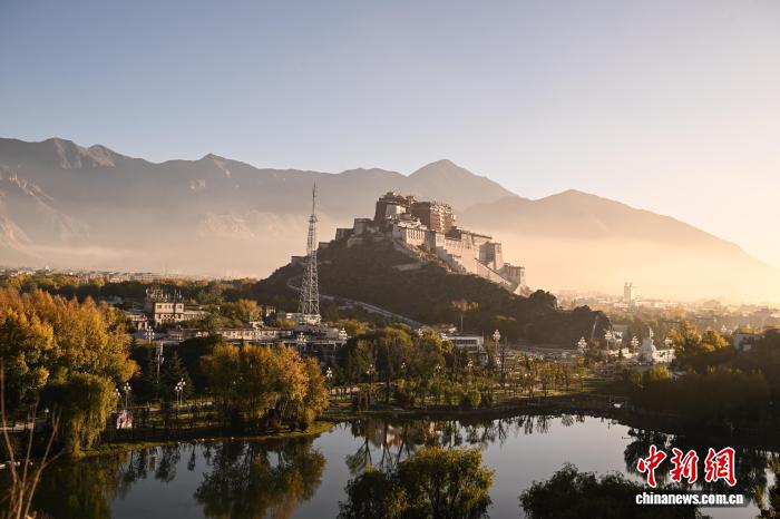 10月22日清晨,薄雾尚未散尽,西藏拉萨团结公园的黄叶与布达拉宫相映成趣,勾勒出高原秋日的独特画卷。中新社记者 贡嘎来松 摄
