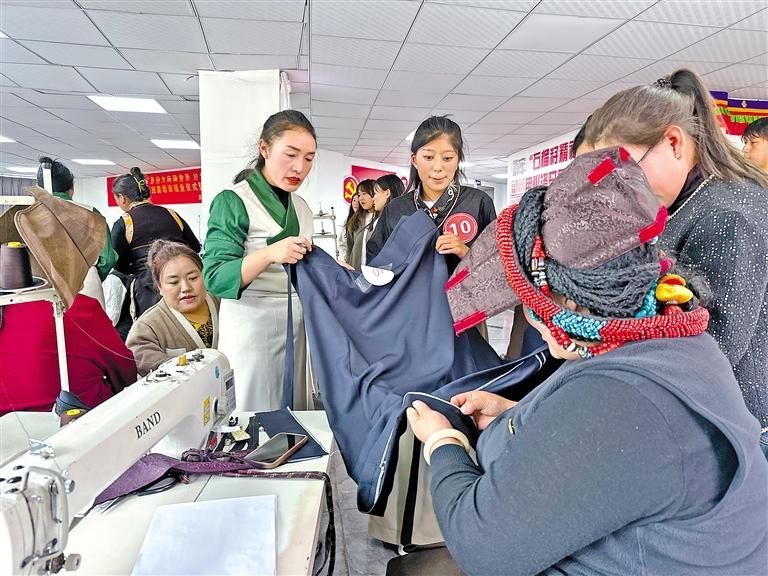 结业仪式现场,学员们纷纷拿出看家本领,将所学技艺融入一针一线、一裁一剪,展现学习的成果。其中,来自贡觉县的益西拉姆,因腿脚不便需拄拐行动,但她的眼中满是坚毅与自信。她告诉记者:“参加这次培训,对我来说是改变人生的契机。我一直渴望自食其力,在这里学到的藏式服装制作技艺,让我有了实现梦想的能力,我打算回县里开一家藏式服装店。”