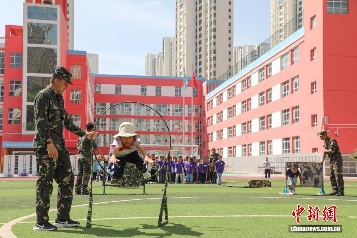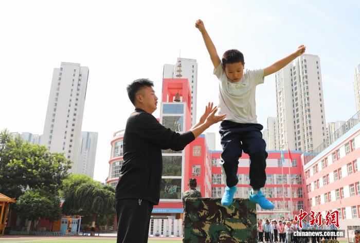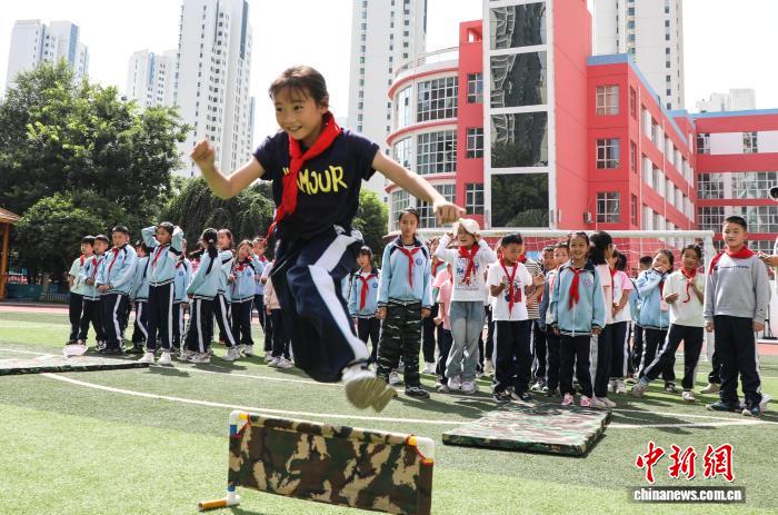 图为学生体验组合障碍训练。中新社记者 马铭言 摄