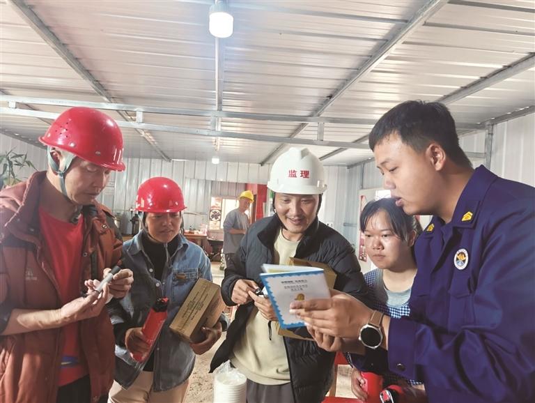 宣讲员为工人讲解安全常识。图由拉萨市消防救援支队提供