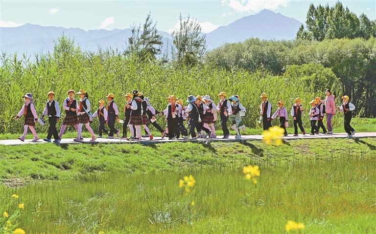 近日,拉萨市实验小学组织学生来到拉鲁湿地国家级自然保护区开展生态研学活动,帮助学生开拓科学视野,增强环保意识。