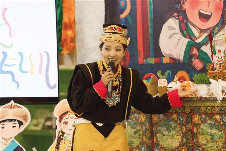 贡觉卓玛正在给学生们讲解藏历新年民俗。