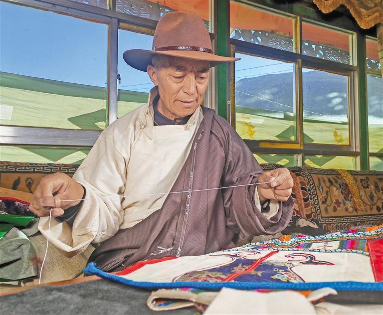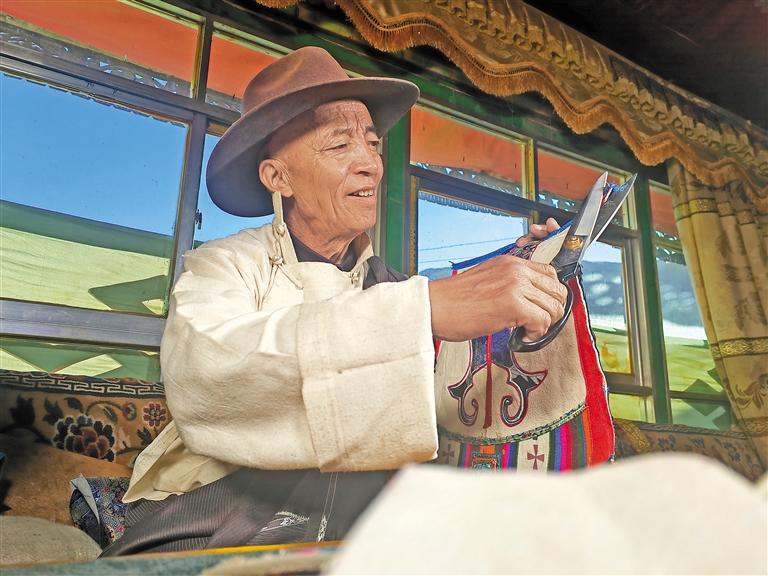 在拉萨市墨竹工卡县唐加乡达布村,岁月的痕迹悄然爬上了66岁老人加措的面庞,但他眼中对裁缝技艺的炽热从未熄灭。加措是达布林耐家族裁缝技艺的第五代传人。自7岁起,在父亲旦珍的悉心教导下,踏上了探索这门古老技艺的征程,自此坚守了五十多年。