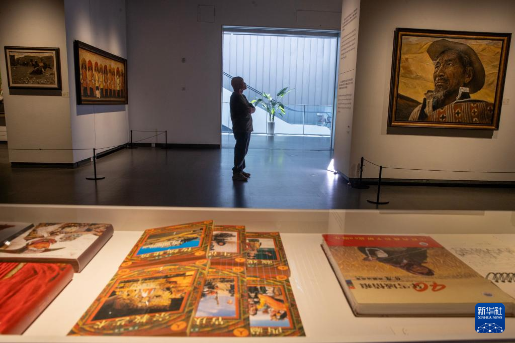 观众在西藏美术馆参观张鹰的画展(5月13日摄)。新华社记者 姜帆 摄