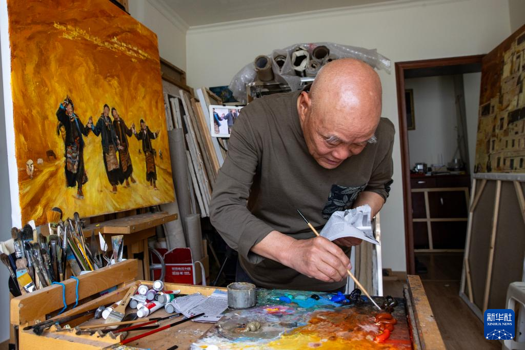 张鹰在拉萨的画室作画(5月13日摄)。新华社记者 姜帆 摄