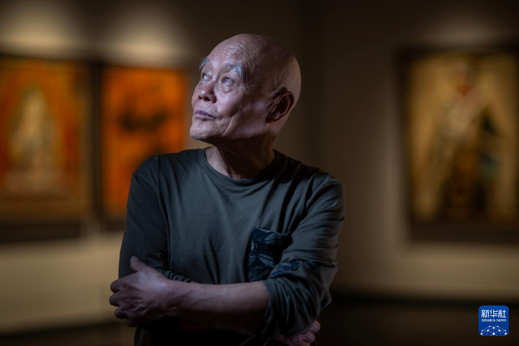 张鹰在西藏美术馆自己的画展上(5月13日摄)。新华社记者 姜帆 摄