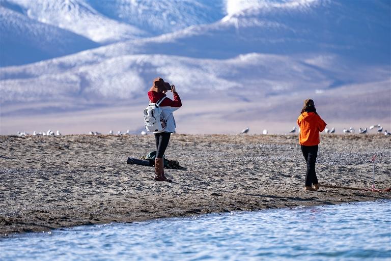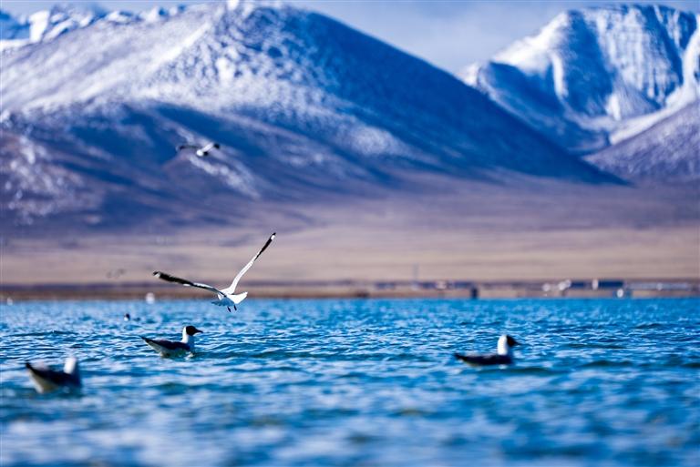 5月19日,“雪域古城·圣地拉萨”文化旅游节之“纳木措开湖日”活动在纳木措湖边开展。纳木措湖畔微风轻拂,湛蓝的湖水与澄澈的蓝天相映成趣。褪去冰甲的纳木措湖面波光粼粼,棕头鸥展翅掠过如镜的湖面,白色牦牛驮着吉祥的哈达静立岸边,宛如一幅天然的山水画卷。